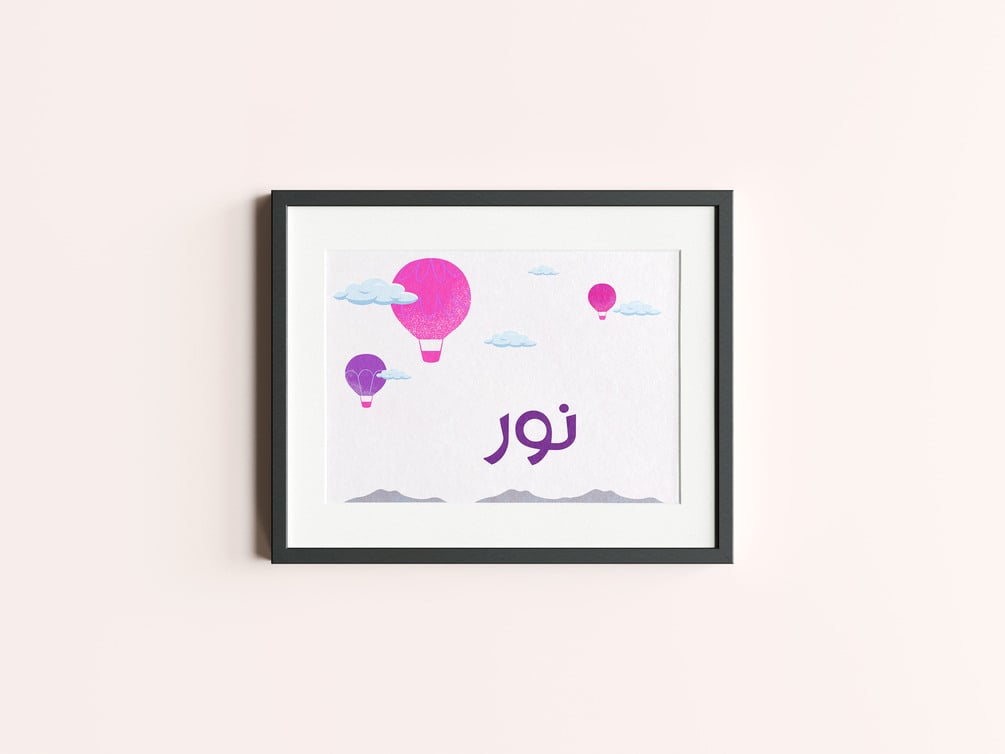 This Noor name digital wall art print is super cute and perfect for any children's room. This wall art comes in Transliteration and Arabic writing.